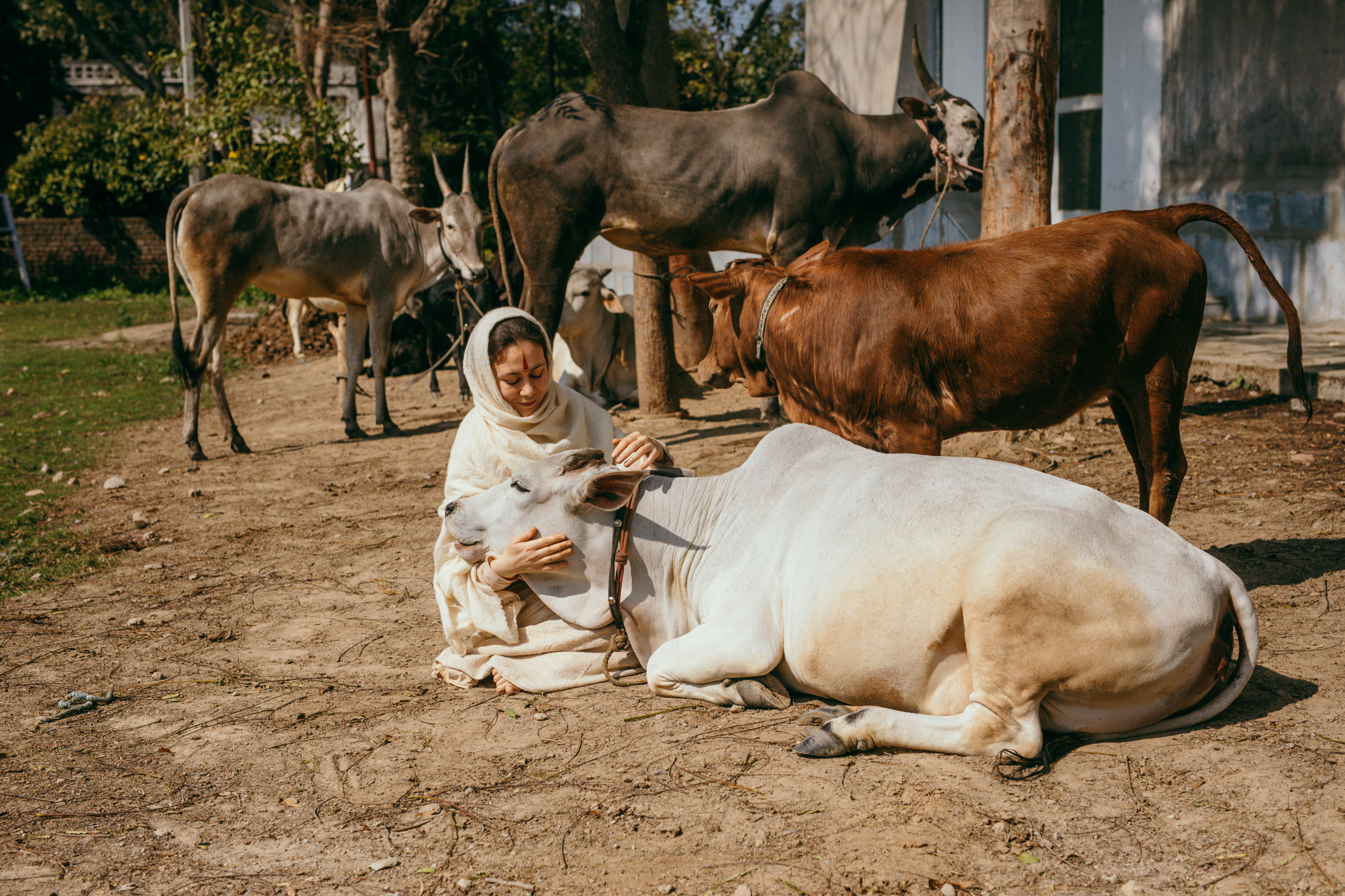 Our shelter is located in the holy city of Vrindavan, on the banks of the sacred Yamuna, within the Ashram of Shri Devraha Baba. This is a place where love and care become a reality for over 1,000 cows. We take under our protection not only healthy cows and bulls but also those who are in special need of help: the sick and cows with physical challenges, who find shelter and care in our ashram. We strive to surround every Gau-mata under our care with the utmost attention, creating an atmosphere of peace and love for them.